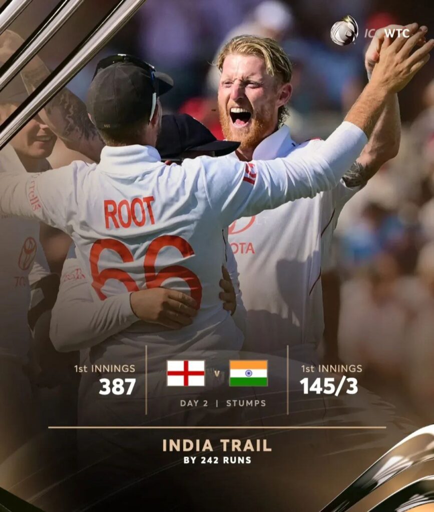 KL Rahul looked calm and composed as he played a responsible knock. He scored a solid half-century and stayed unbeaten at the crease. On the other end, Rishabh Pant played his natural aggressive game while being careful not to throw away his wicket. Together, the duo built a steady partnership that helped India reach 145/3 at stumps on Day 2. They still trail England by 242 runs, but with two experienced batters at the crease, India will hope to close the gap on Day 3.