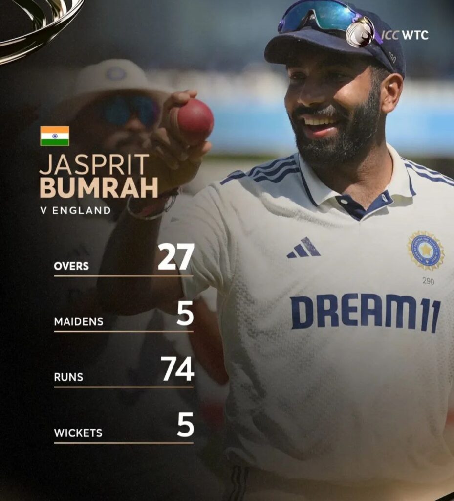 The second day of the third Test between India and England at Lord’s brought excitement and a bit of drama. England started strong with a total of 387 runs, but India’s Jasprit Bumrah turned the game around with a brilliant five-wicket haul. After struggling on Day 1 with a flat pitch that offered no movement, Indian bowlers made a solid comeback on Day 2. Bumrah was the hero of the day, while Nitish Kumar Reddy also impressed by taking two important wickets in just one over on Day 1. England’s lower order, especially Jamie Smith and Brydon Carse, added some crucial runs before getting bowled out in 112.3 overs.